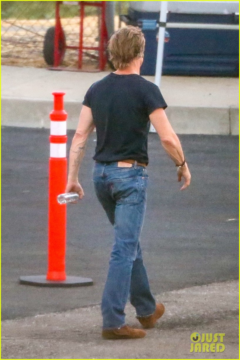 Brad Pitt Looks Buff In His Black Tee On Set With Leo Dicaprio