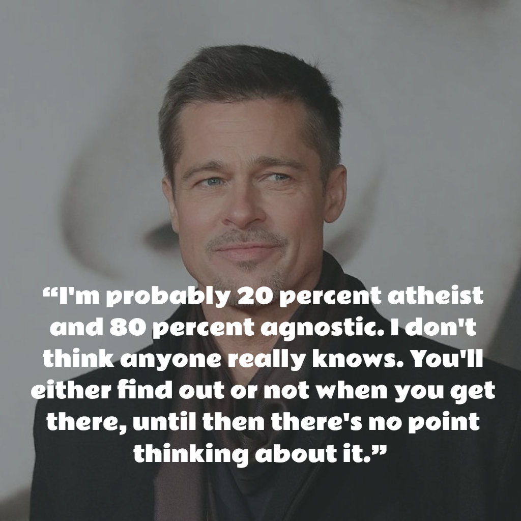 Id go to christian revivals and be moved by the holy spirit and id go to rock concerts and feel the same fervor. While he questioned religion growing up he felt like it worked at times he said. Brad pitt describes himself as 80 percent agnostic.