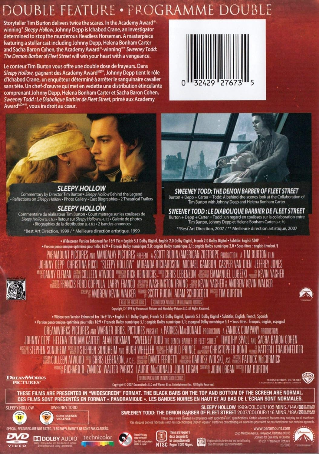 Amazon Com Sleepy Hollow Sweeney Todd The Demon Barber Of Fleet Street Double Feature Johnny Depp Christina Ricci Helena Bonham Carter Alan Rickman Miranda Richardson Tim Burton John Logan Laurie Macdonald Scott